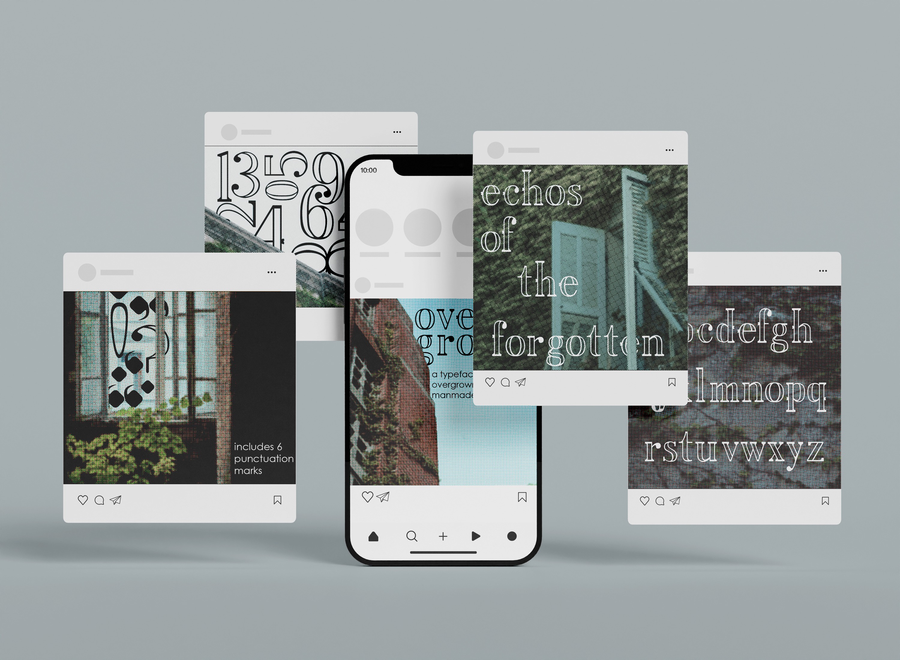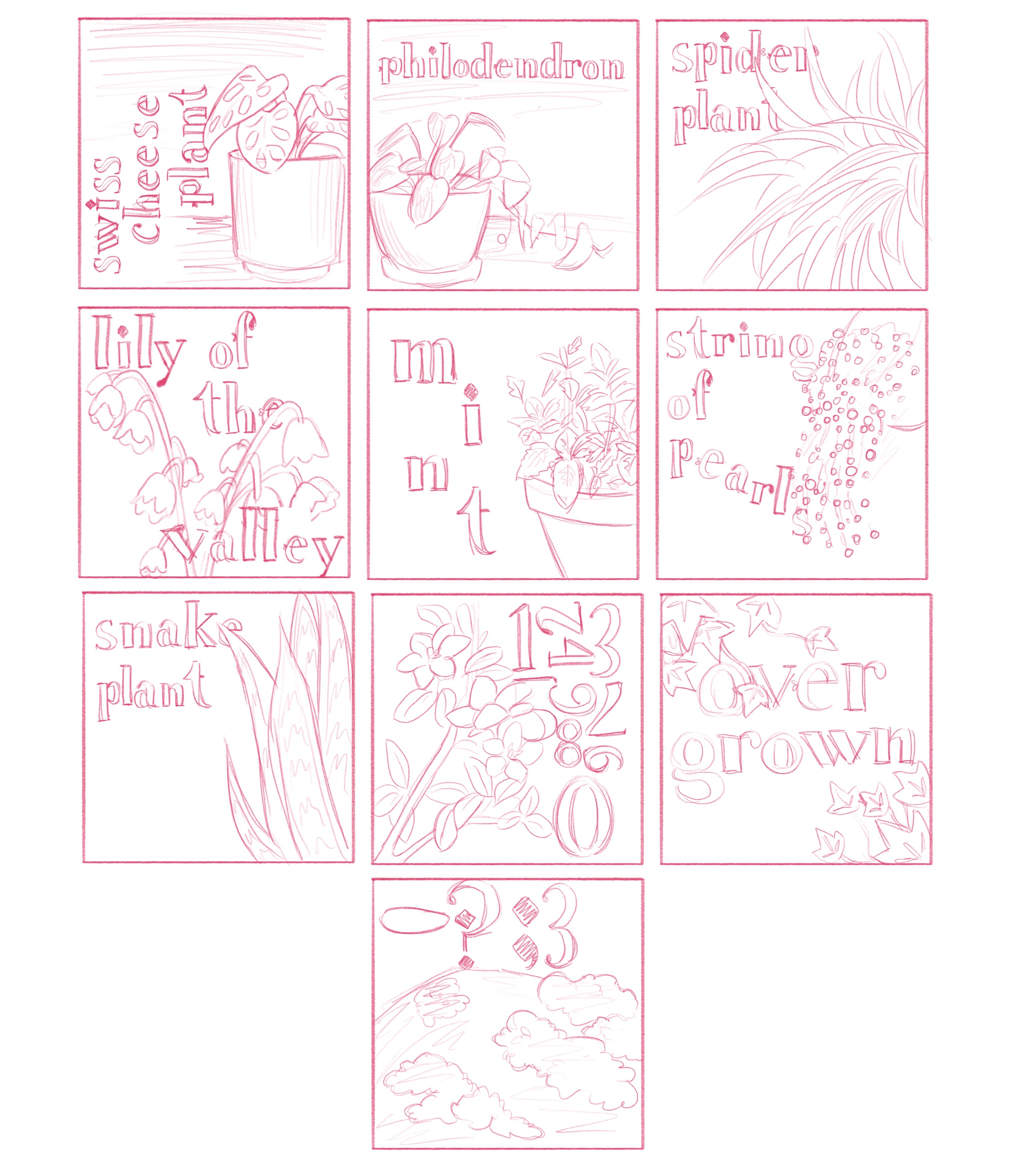 The creation of this typeface started off with sketching different iterations of certain letters to see what opportunities there were. These sketches were then transferred into Illustrator where they were digitized, I would then use parts of certain letters and mix them with parts of other letters to create the whole alphabet. I also sketched different concepts for the images that would be used to promote the typeface on a possible website, in the end I went with a concept that used images of plants overtaking manmade structures with phrases typed out using the Overgrown typeface combined in the environments.